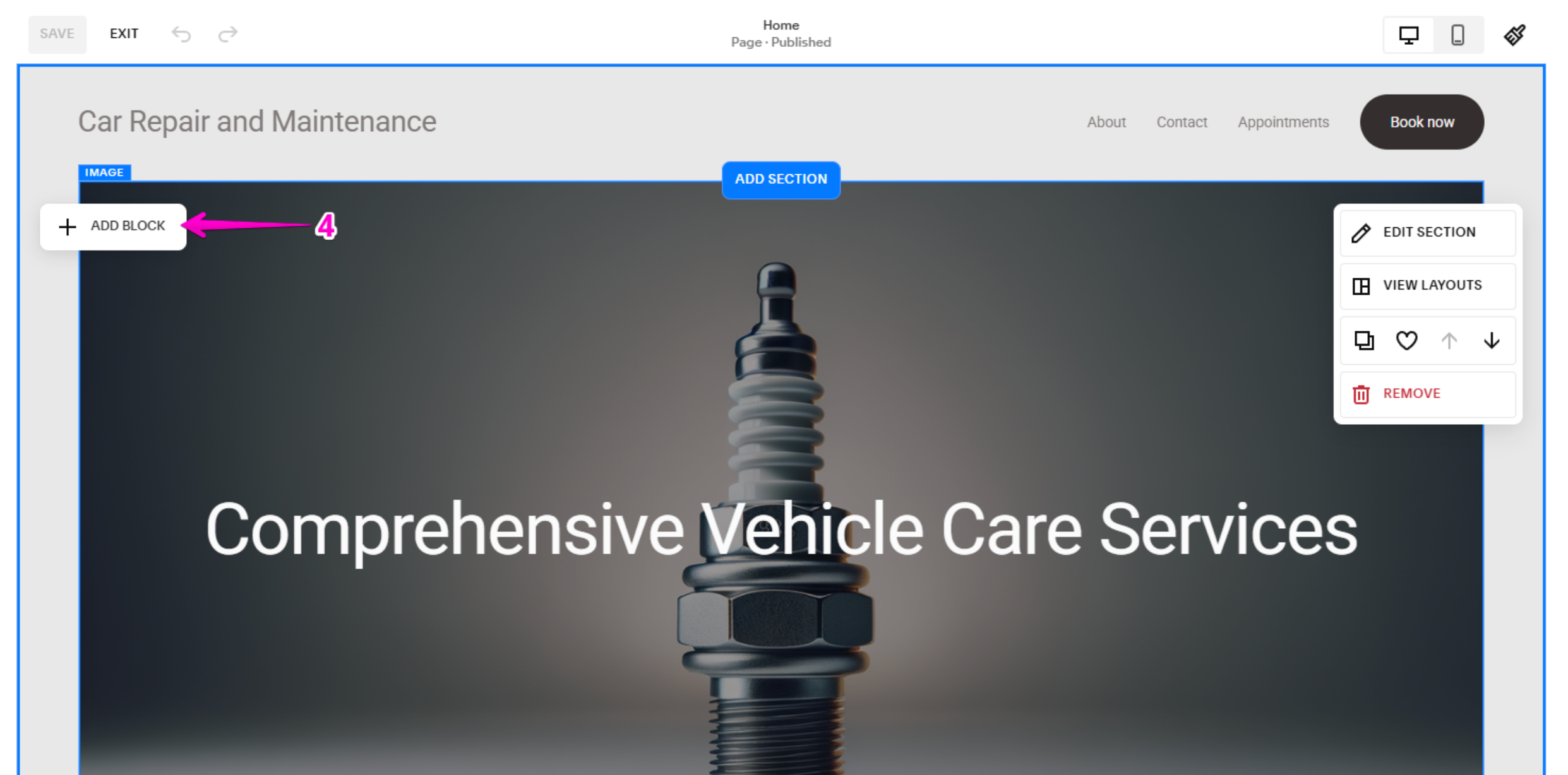 - On the site preview, click Edit at the top.