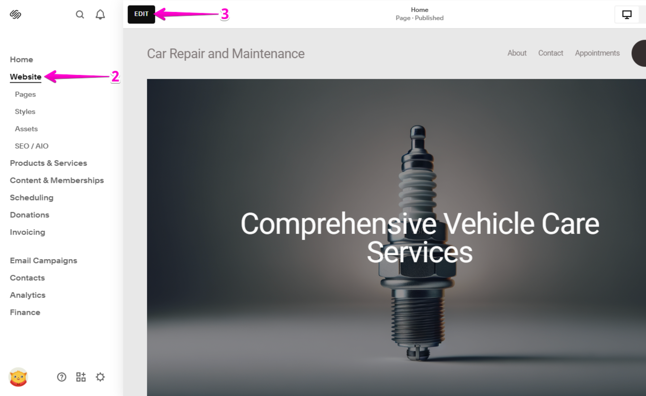 - Log in to Squarespace.