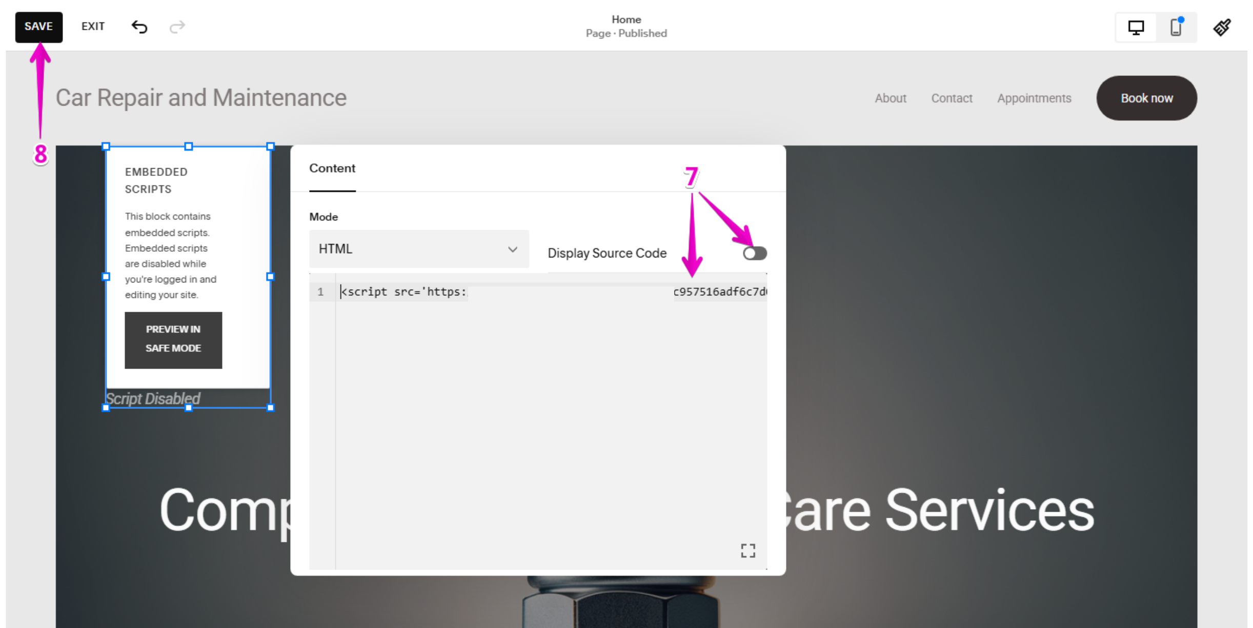- Confirm the full embed code was pasted